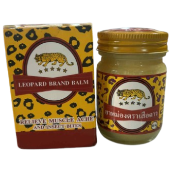 Forget about the Singaporean Tiger Balm! This world-class Thai balm is so much better! Leopard is a powerful, invigorating medicated massage balm with a warm, aromatic profile. Designed to provide soothing relief, it effectively addresses muscle soreness, stiffness, arthritis, lower back pain, rheumatism, headaches, nasal congestion, joint discomfort, and insect bites. Crafted with a blend of natural ingredients such as eucalyptus, cinnamon oil, camphor, menthol, and clove oil, this natural balm offers both relief and invigoration.