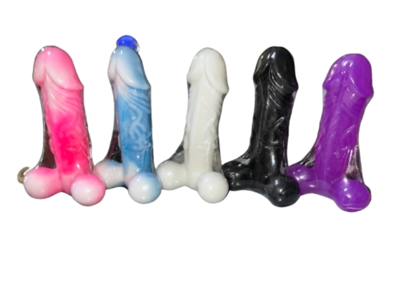 Introducing our highly aromatic penis-shaped soaps—12 cm of scent-forward fun, weighing 100 grams each. Five vibrant colors (blue, black, white, pink, purple) come with a convenient rope for hanging anywhere you want a conversation starter. They can also function as a witty air freshener on the toilet! Perfect as a playful gift that’s as cheerful as it is fragrant.
